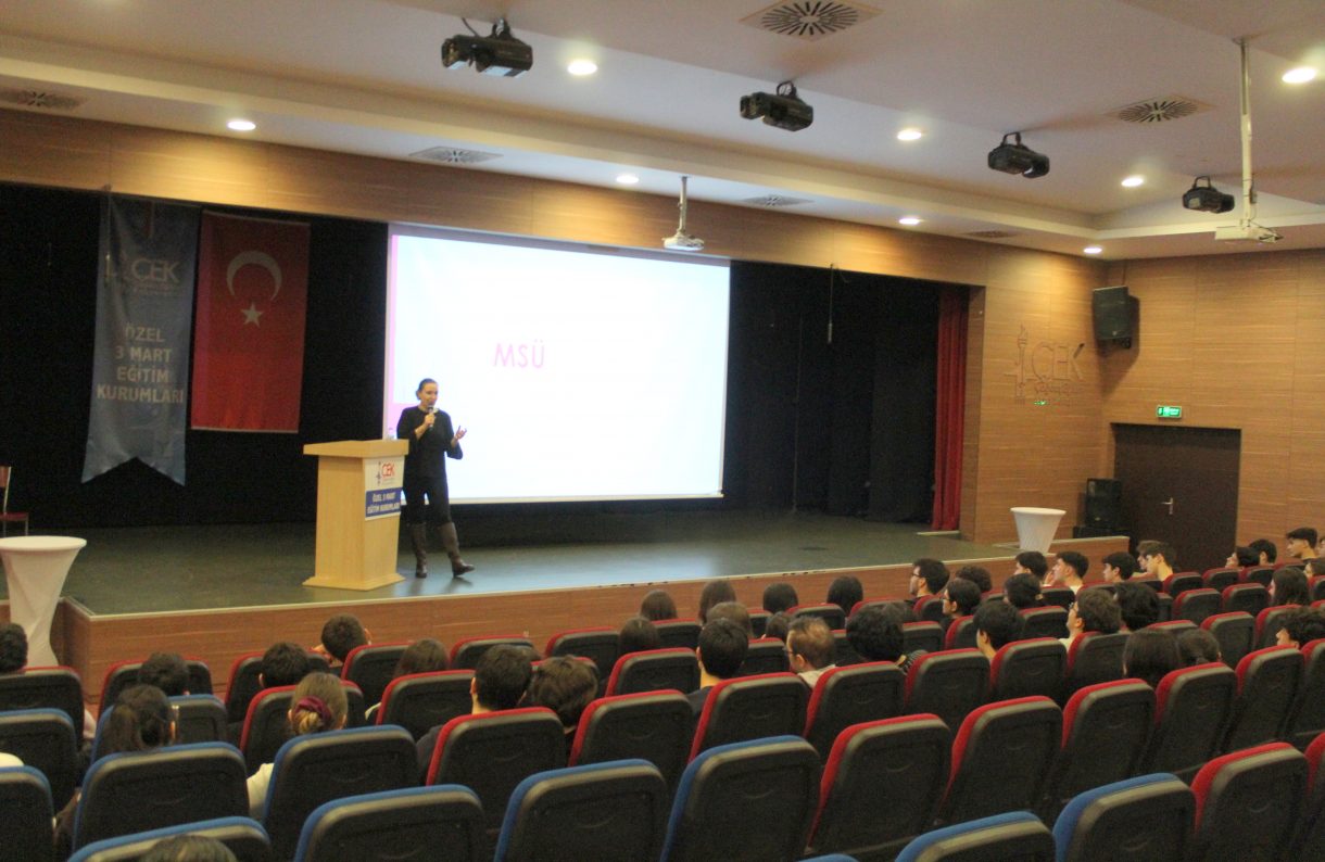3 Mart Halil Güleç Fen Lisesi ve Ulviye-Ziya Gökalp Özer Anadolu Lisesi rehber öğretmeni Cansu Arı 12. sınıf öğrencilerine yönelik "YKS'ye Çeyrek Kala" başlıklı bir sunum gerçekleştirdi.
