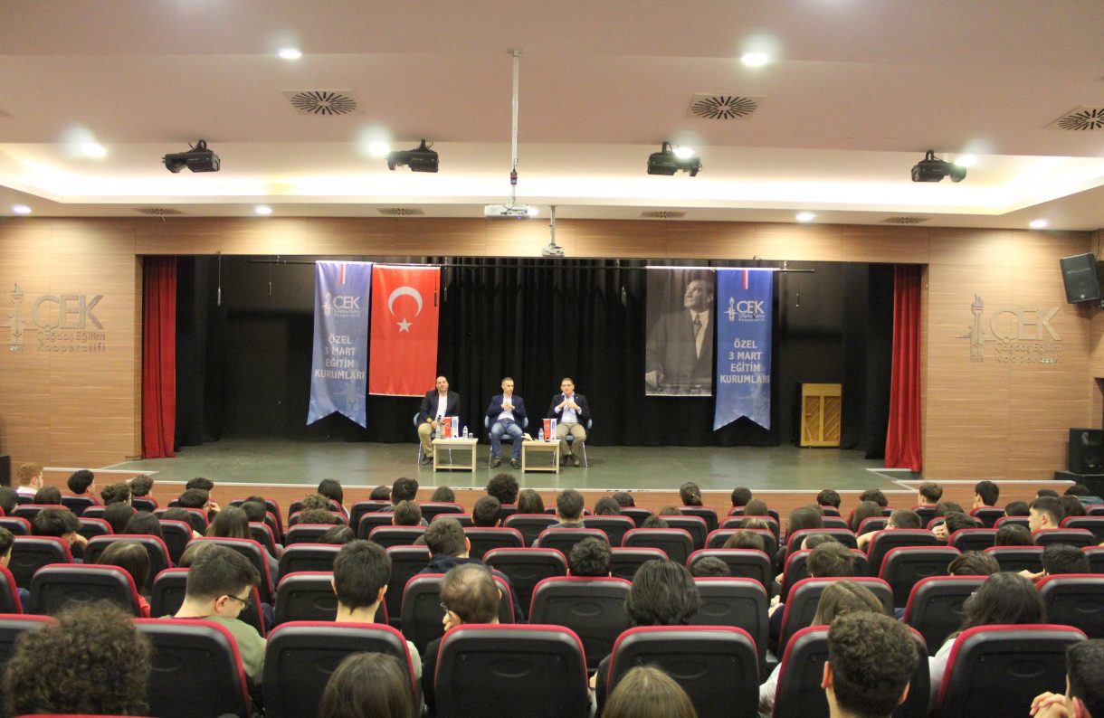 3 Mart Halil Güleç Fen Lisesi ve Ulviye-Ziya Gökalp Özer Anadolu Lisesi 11 ve 12. sınıf öğrencileri, konferans salonunda düzenlenen söyleşide üniversite temsilcileriyle bir araya geldi.