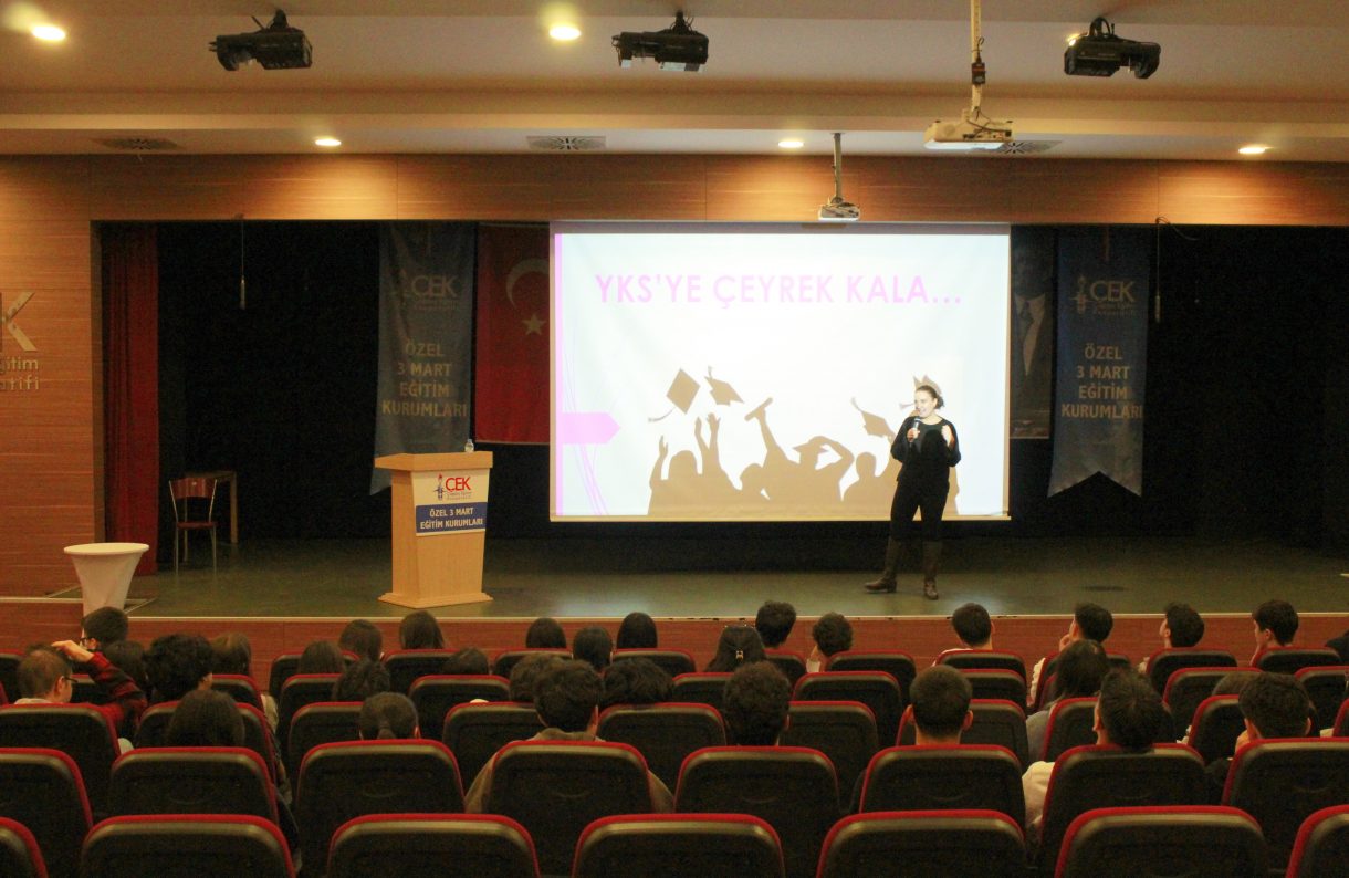 3 Mart Halil Güleç Fen Lisesi ve Ulviye-Ziya Gökalp Özer Anadolu Lisesi rehber öğretmeni Cansu Arı 12. sınıf öğrencilerine yönelik "YKS'ye Çeyrek Kala" başlıklı bir sunum gerçekleştirdi.