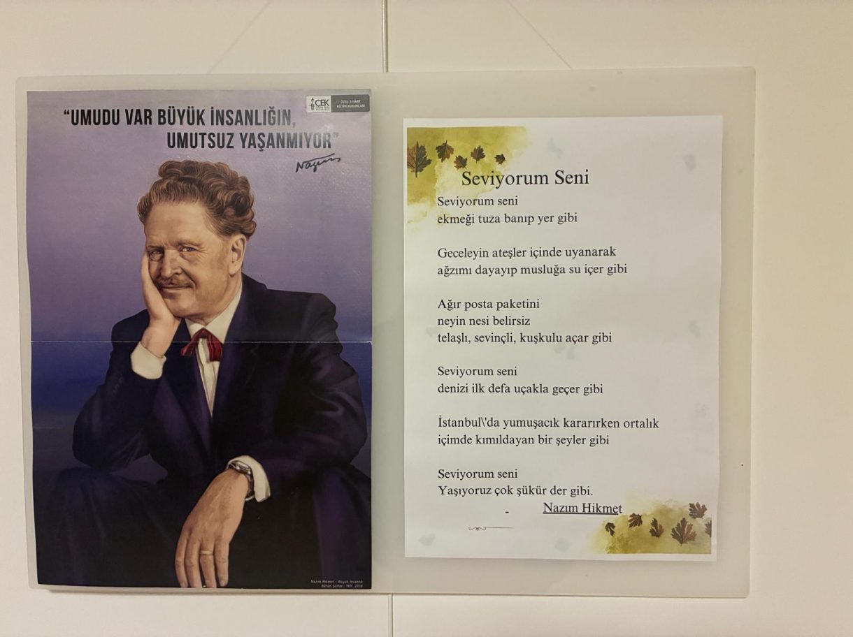 Zamana ve mekâna meydan okuyan şair ve yazarları öğrencilerle buluşturmak amacıyla okulda "Edebiyat Duvarı" oluşturan öğretmenler, Sabahattin Ali'den "Aldırma Gönül", Yaşar Kemal'den "Yalnızlık", Nazım Hikmet'ten "Seviyorum Seni", Özdemir Asaf ve daha birçok değerli sanatçının şiirleri, sözleri ve yaşam öyküleri bu duvarda yer alıyor.